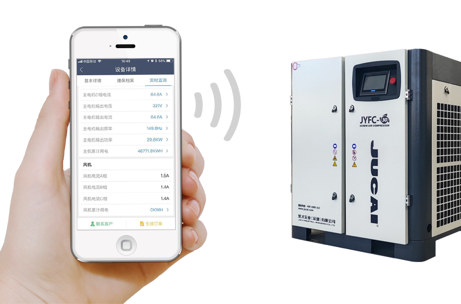 通过物联网技术对空压机设备进行全生命周期管理,远程检测,远程管理,手机预警,数据采集等