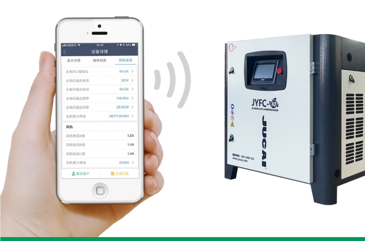 通过物联网技术对空压机设备进行全生命周期管理,远程检测,远程管理,手机预警,数据采集等